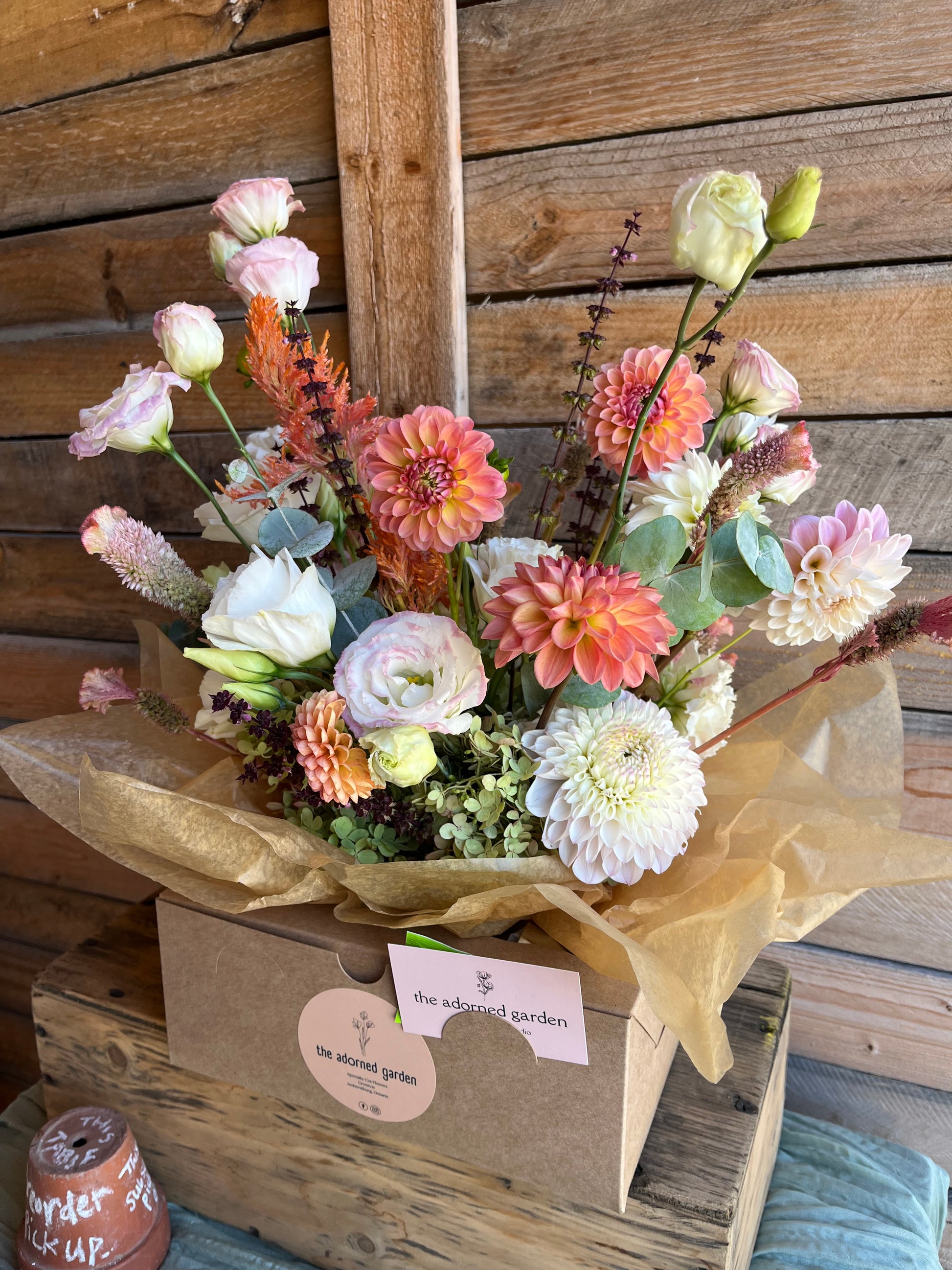 •Centerpiece in Shannon Penner Pottery (limited stock, when pottery is sold out they will come in a different styled vase). $140